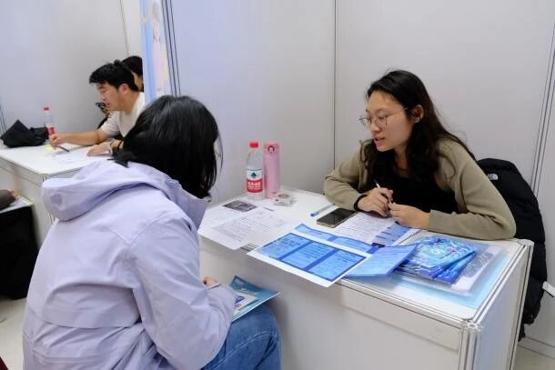 展位前,人流涌动,“您好,我和这个岗位的适配在…”、“这个项目锻炼了我…”简历翻动,是四年青春的缩影,言语交汇,是从容应对的姿态,或以专业能力博得青睐,又或凭创新项目惊艳全场,此刻未来前路徐徐铺展开,数个青春理想,正闪闪发光。