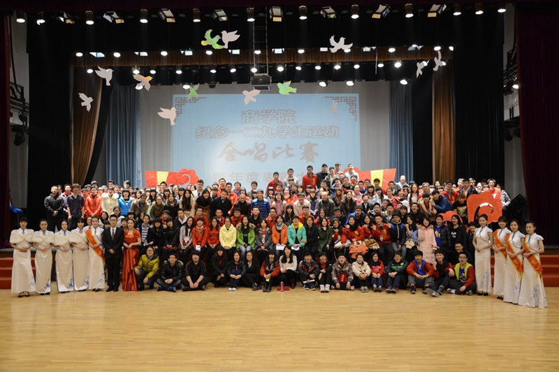 2013—2014学年表彰大会暨纪念“一二九”运动合唱比赛在良乡校区文体馆隆重举行。学生处副处长徐红京、院长王国顺、党总支书记欧阳爱平、副院长杨浩雄、党总支副书记褚才宽及工商管理系、市场营销系、物流管理系系主任和14级各班班主任、辅导员老师出席了本次晚会。