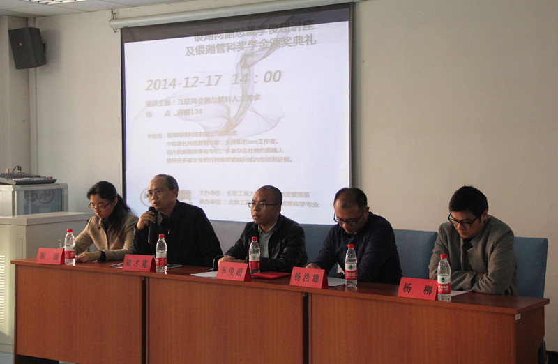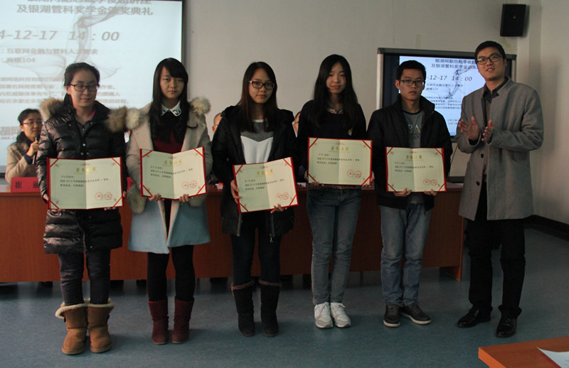 在良乡校区举行了银湖管理科学奖学金的颁奖典礼活动,银湖网副总裁李俊超、品牌总监杨柳,第一版主