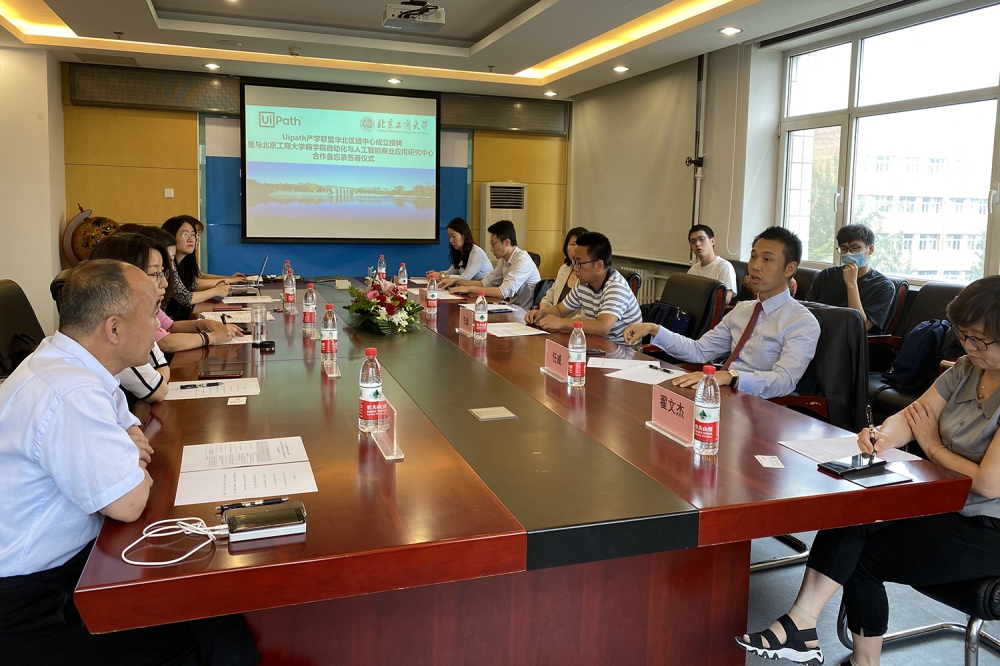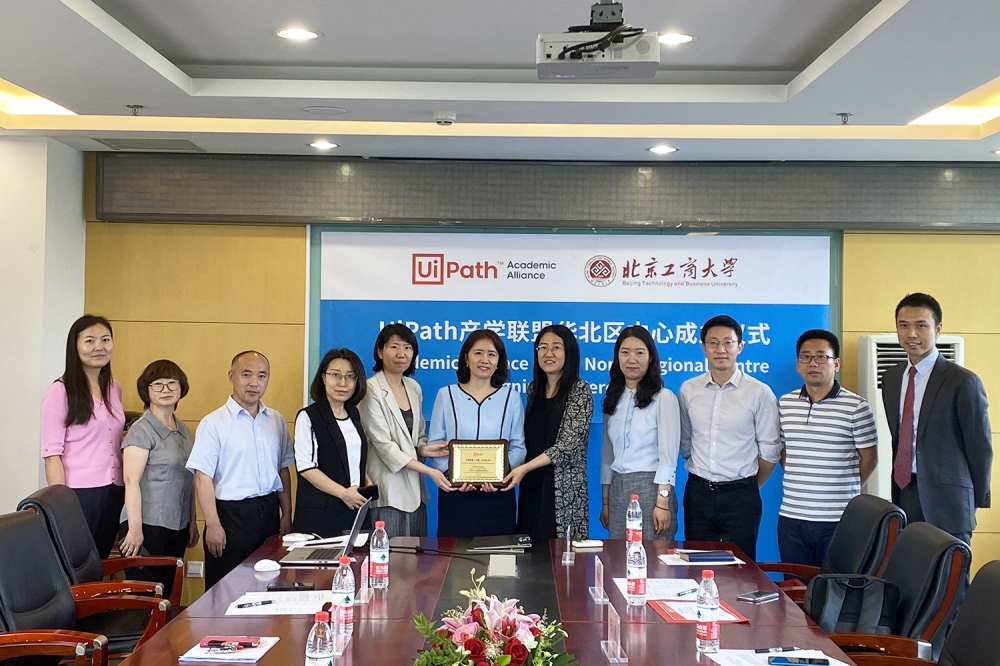 6月8日上午,UiPath产学联盟华北区域中心成立授牌暨与第一版主 自动化与人工智能商业应用研究中心合作备忘录签署仪式在阜成路校区第一版主 会议室举行。第一版主 党委书记张春萍、自动化与人工智能商业应用研究中心主任孙玥璠、UiPath产学联盟负责人石小萌、第一版主 郑宇花老师、北京理工大学张永冀副教授、北京交通大学任斌副教授、北京信息科技大学李卓松老师和中电文思海辉信息技术有限公司产教融合中心总经理雷玉广、国信蓝桥信息技术(北京)有限公司院校合作总监田润枝、北京中投创展科技有限公司总经理任威、培训部经理翟文杰及部分学生代表出席了本次仪式。仪式由第一版主 孙玥璠主持。