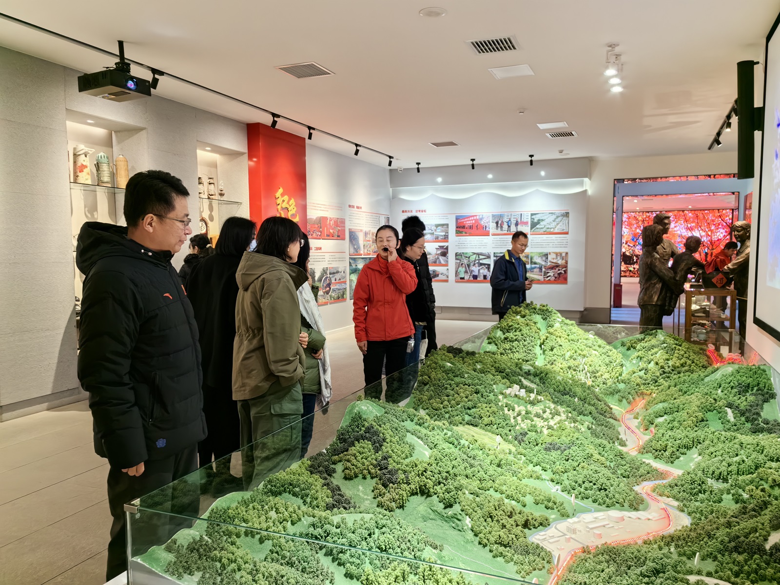首先,大家走进红色背篓精神纪念馆。纪念馆布展结构以“红色背篓精神”的核心——“坚决听党话,坚定跟党走,坚持为人民”为主线,再现了背篓商店的发起人王砚香带领党员职工踏遍群山路、背着背篓为人们送货的场景;通过《红色记忆》、《红色传承》、《红色使命》、《美好愿景》四个板块,以图、文、实物和影像等形式还原了“红色背篓精神”的诞生过程,以及黄山店村党组织弘扬“红色背篓精神”,引领产业转型,克服困难,砥砺前行,实现创新发展的奋斗历程。