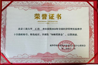 会议评选了2024年全国经济管理实验教学十佳教师称号,旨在表彰在经管类实验教学领域做出突出贡献的教师。经过严格评审,王滢老师凭借其卓越的教学成果和创新教学方法,成功获得这一殊荣。王滢老师长期致力于经管实践教学创新,参与组织建设“人工智能+课程群”,实现了数字赋能人才培养目标的教学理念创新、人工智能+管理类专业课程群的数字化内容创新、以混合式教学为主要模式的教学过程设计创新。在《数字运营管理》课程中,她设计了课程独特的知识图谱和能力图谱,在有效结合“知识技能实验”和“职业体验实践”的基础上,形成“思政-知识-能力-创新”的培养目标升级,取得了良好的教学成果。