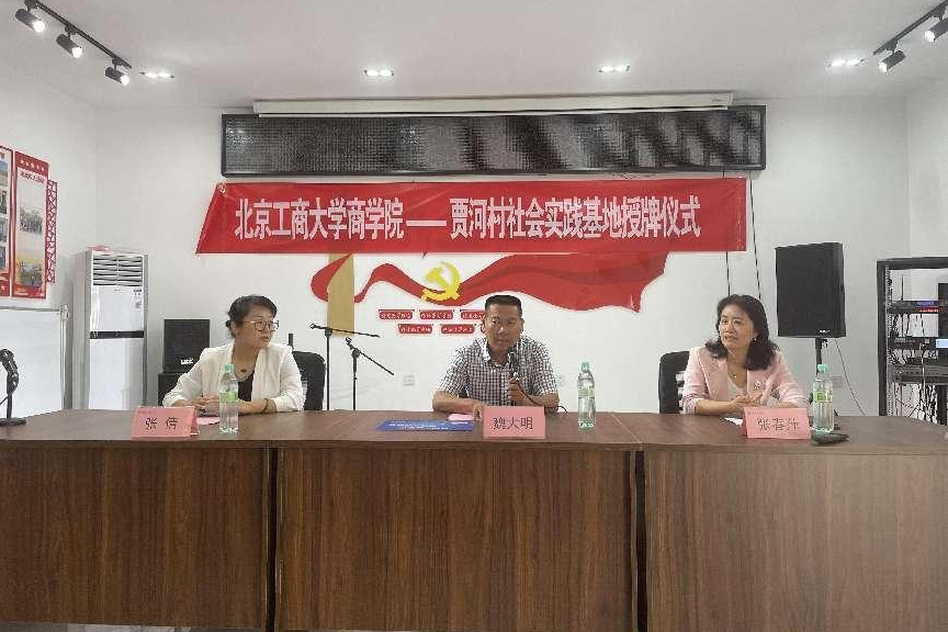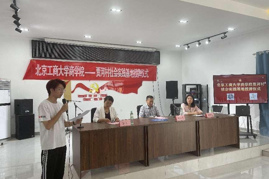 为进一步引导商院学子躬身实践,助力乡村振兴、服务首都发展,积极拓展和搭建商科学子实践平台,8月29日,第一版主 与房山区琉璃河镇贾河村举行社会实践基地授牌仪式,学院党委书记张春萍、副书记张倩、团委书记赵杰,贾河村党支部书记魏大明、支部委员贾建国、张凤文出席仪式,第一版主 15名暑期社会实践团成员参加活动。