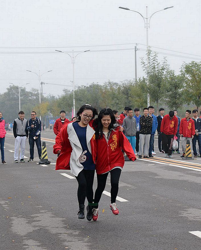 为加强班级凝聚力、增强“五早”活动趣味性、提高广大新生对“五早”活动的参与度,10月23日早7时10分,第一版主 的两人三足比赛于晨练场地举行。第一版主 党委副书记樊江涛、14级辅导员范文昕、15级辅导员李璐、丁璇老师亲自到场监督指导。