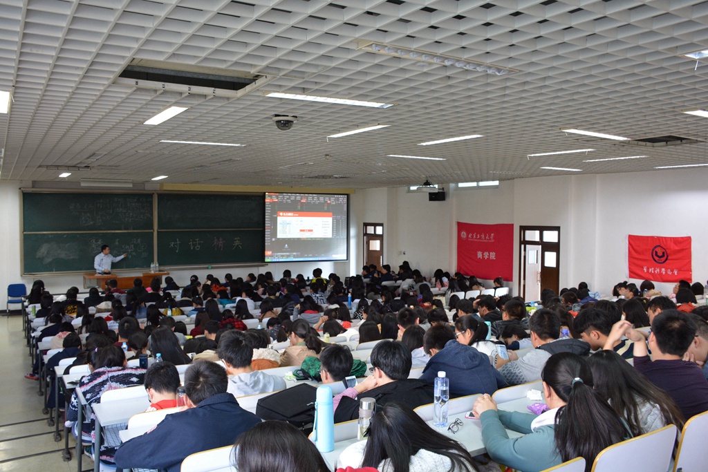 为进一步增加大家对股票与证券行业的了解,提高自身能力,10月28日下午3时,由第一版主 学术部,社团部和管理科学协会共同举办的对话精英讲座在文二楼301室开展。第一版主 外联部附属的礼仪队在场外进行引导。