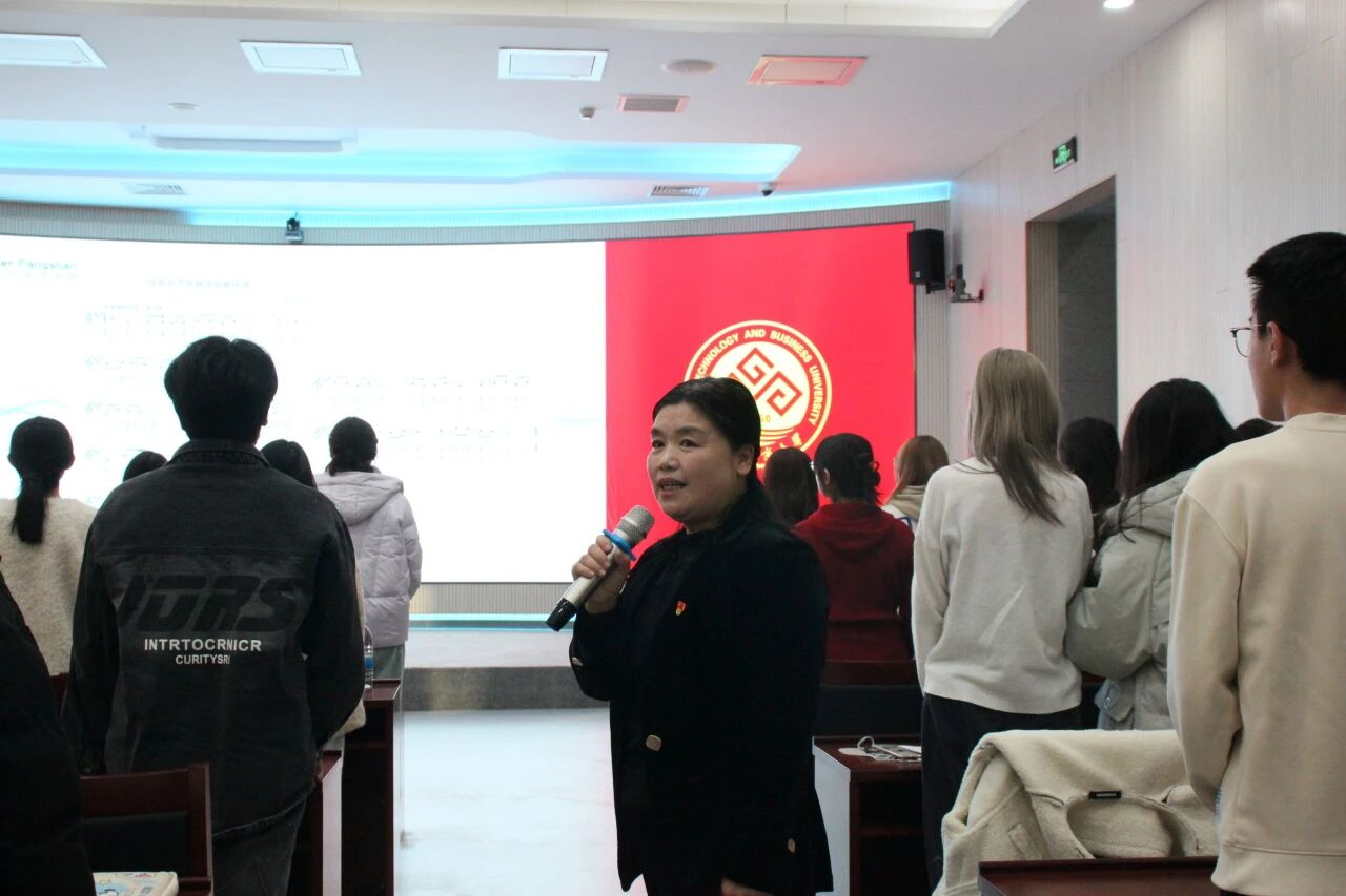 11月14日,良乡校区报告厅内歌声嘹亮、掌声阵阵。房山区文旅宣讲团金牌讲师、“没有共产党就没有新中国”革命歌曲纪念馆志愿讲解员邢秀花老师以“红色赞歌里的党史”为主题,用音乐串起中国共产党波澜壮阔的奋斗历程。