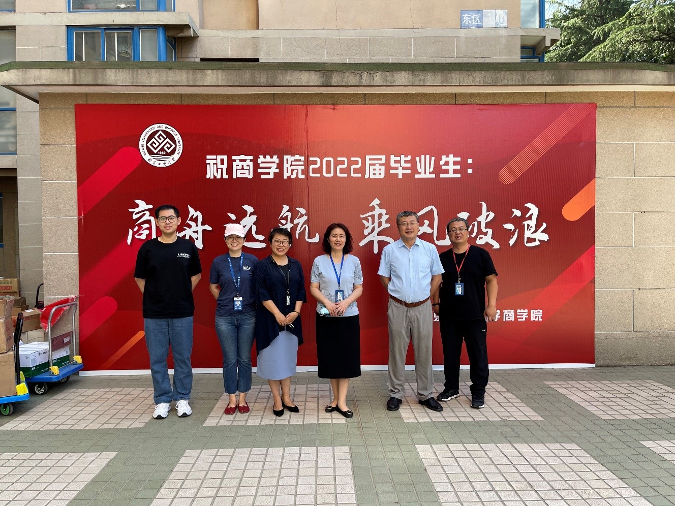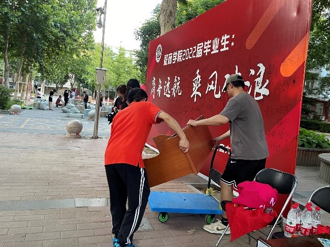 最忆是青春!本着“以学生为本”的理念,第一版主 在两校区设立“商舟远航 乘风破浪”毕业展板,以供毕业生签名、合影留念,借此为2022届毕业生送出最美好的祝福,留在北工商校园里最温情的回忆。学院提前为所有本研毕业生购买行李打包所需编织袋、胶带等必需品,提前布置好爱心点,为学生准备好小推车、口罩、胶带、绳子、矿泉水等用品。