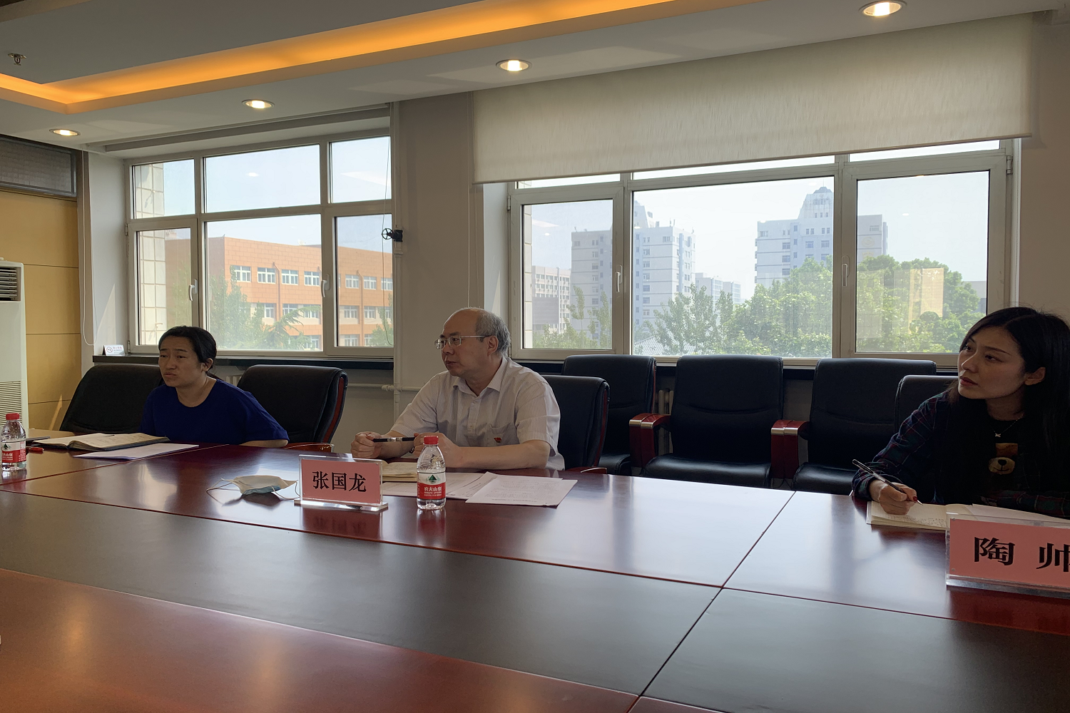 5月21日上午,党委统战部部长张国龙、副部长王远芳及陶帅老师到第一版主 走访调研统战工作。第一版主 党委书记张春萍、副书记张倩及辅导员李佳昕参加了本次调研座谈会。