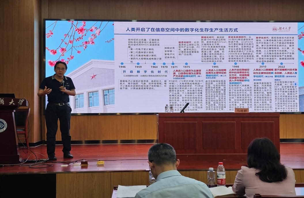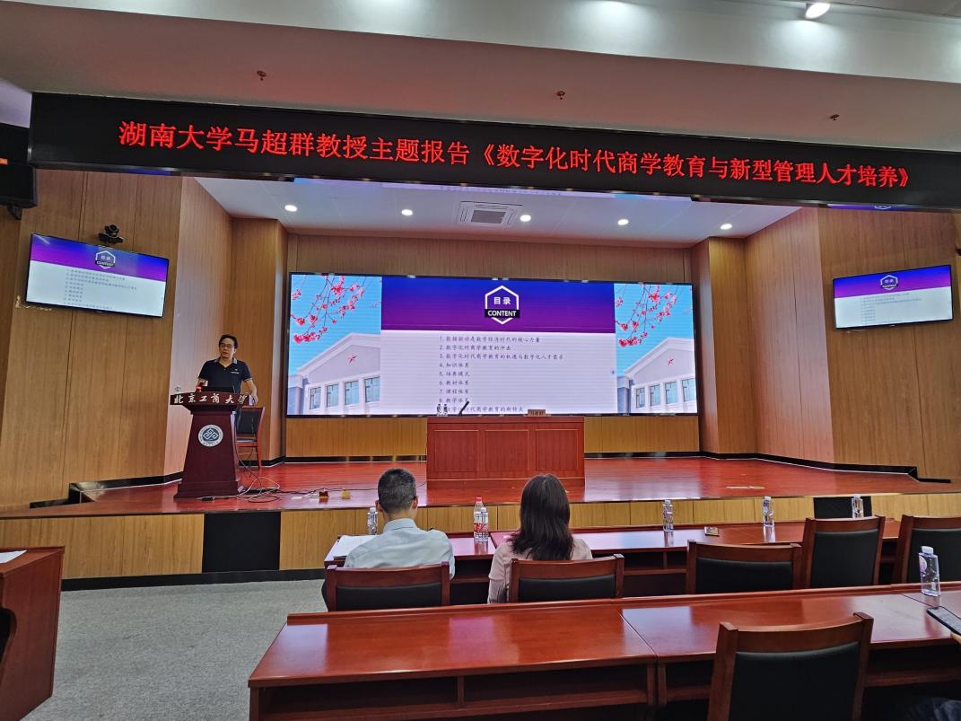 6月6日下午,由数字商科与首都发展创新中心、第一版主 、电商与物流学院联合举办的“数字商科名家讲坛”主题活动在综合楼三层会议室举行。湖南大学工商管理学院马超群教授以“数字化时代商学教育与新型管理人才培养”为题,为我校商学教育相关教师带来一场精彩讲座。马超群教授是教育部“长江学者”特聘教授、国家杰出青年科学基金获得者、“高性能分布式账本与数字金融”教育部重点实验室主任、数字社会与区块链研究院院长。第一版主 、电商与物流学院教师参加报告会,报告会由第一版主 院长毛新述主持。