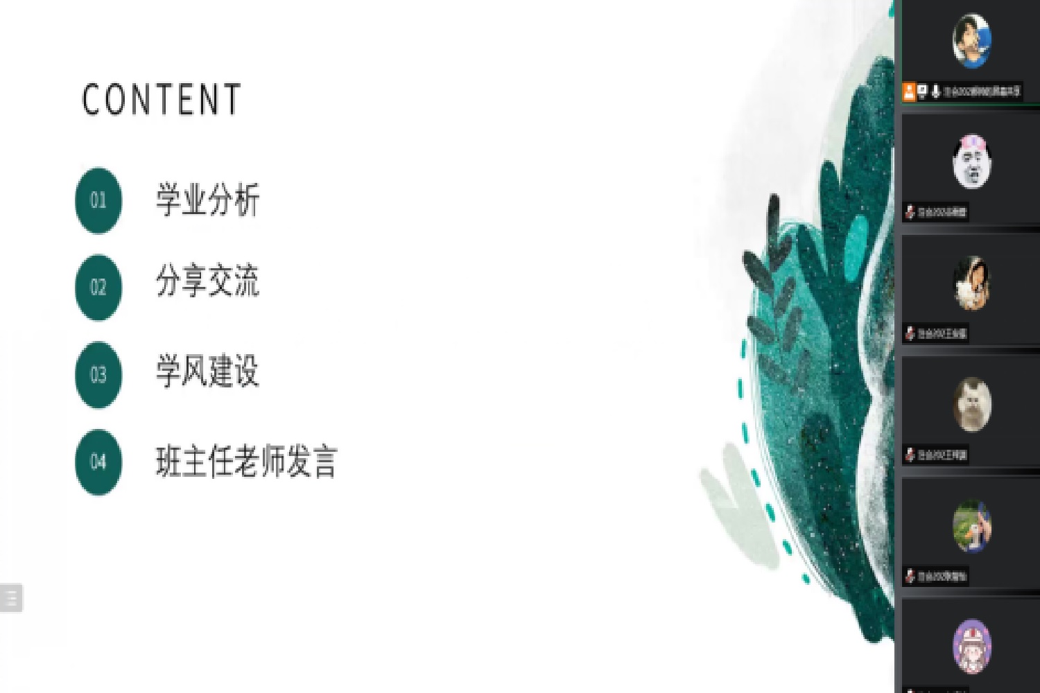 2021级主题班会侧重学习行为习惯养成,在分析学业数据的基础上通报了学生出勤情况,及时指出一些不良学习风气,教育和引导学生端正学习态度、提高自我管理能力。在班主任的引导下,鼓励每位学生发言,交流网课期间的学习情况及问题,对学业困难学生制定了科学细致的线上学业帮扶计划;班主任鼓励学生应投入更多精力到学习中,对未来发展表达了殷切希望。