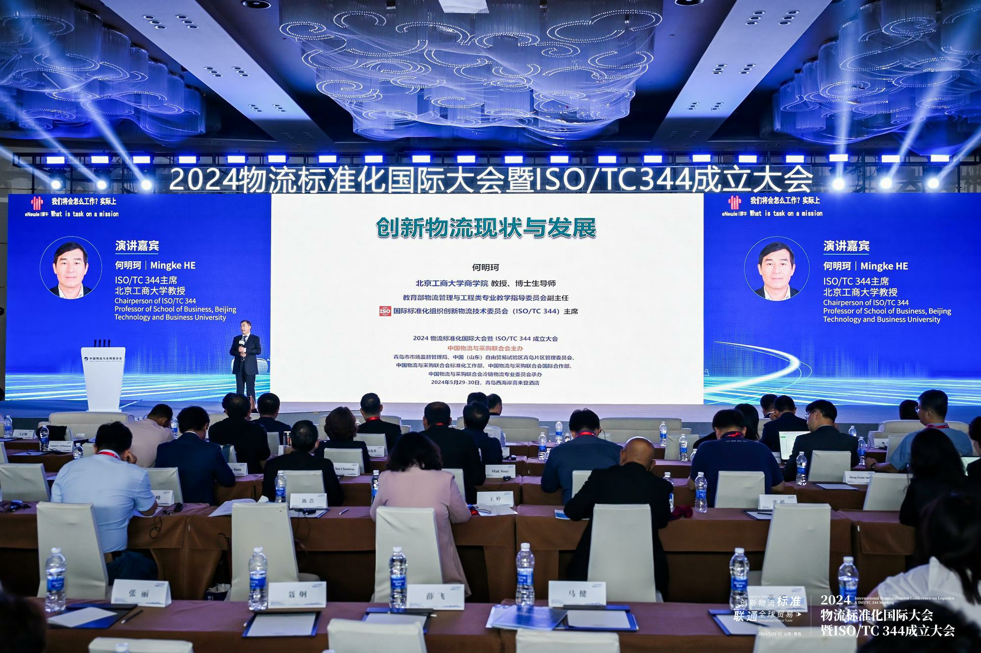 2024年5月29日,以“创新物流标准·联通全球贸易”为主题的 “2024物流标准化国际大会暨ISO/TC 344成立大会”在山东青岛召开。为支持我校在物流国际标准化领域的工作、巩固我校在物流国际标准化领域的地位、拓展我校国际教学科研资源、提升学校国际化办学水平,第一版主 院长何玉润教授前往参加,第一版主 教授、国际标准化组织创新物流技术委员会(ISO/TC344)主席何明珂出席大会并做题为“创新物流现状与趋势”的主旨报告,管理科学与工程专业硕士研究生乔珊、温惠茹、周艺参加会议。