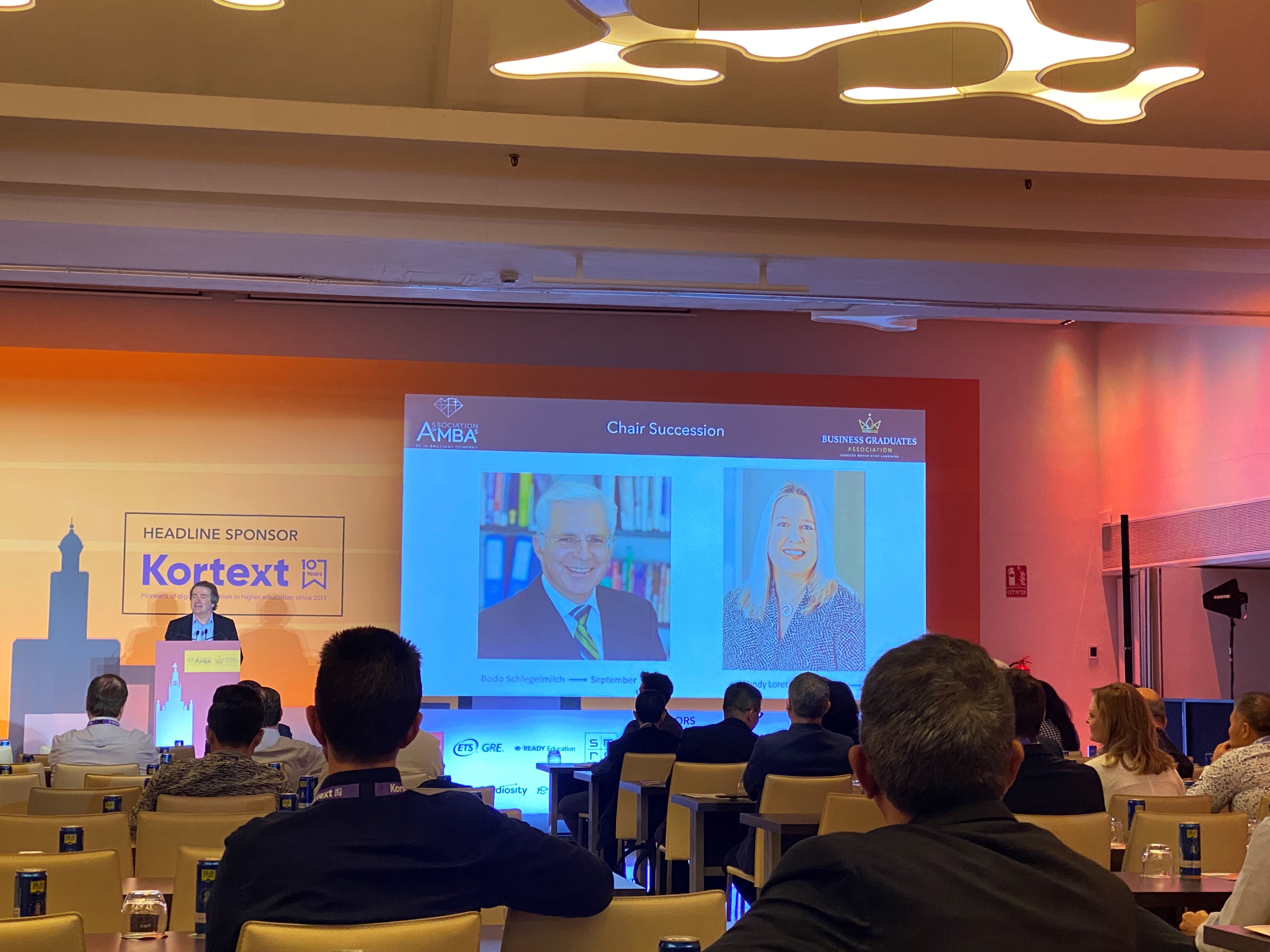 为加快推进第一版主 国际认证工作,2023年5月15日至5月17日,第一版主 党委书记张春萍与副院长王楠参加了英国工商管理硕士协会与商学毕业生协会(AMBA & BGA)在西班牙塞维利亚举办的全球年会。