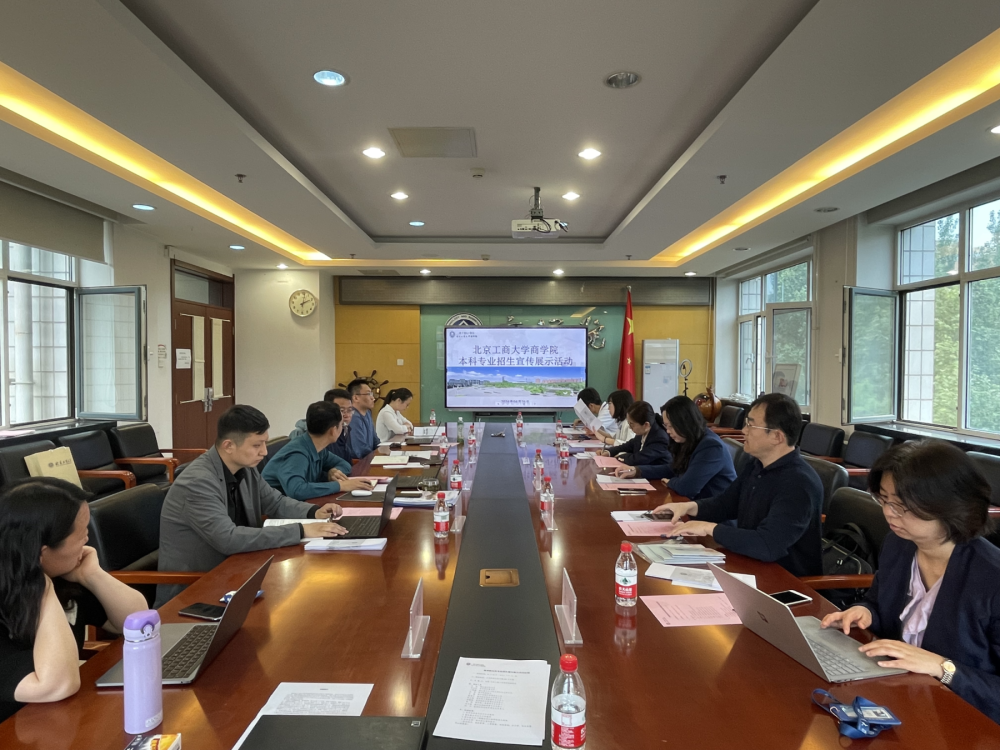 为提升学院本科专业招生宣传水平,展示第一版主 专业建设成果及特色,4月26日,第一版主 在阜成路校区综合楼501会议室举行了第一版主 本科专业招生宣传展示活动。学校招生就业处处长石松、本科招生办公室主任卜晓媛、第一版主 党委书记付仕伦出席会议,各学系主任、全体本科专业负责人和教学秘书参会。会议由副院长仇勇主持。