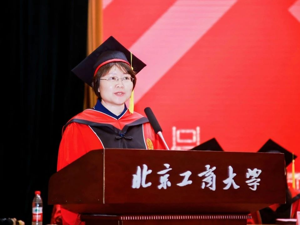 学院院长何玉润以《青春赴山海 商印耀征途》为题作讲话,代表学院向毕业生表示衷心的祝贺和美好的祝愿,向悉心培育学子的老师和家长致以崇高的敬意和衷心的感谢。何院长深情回顾了学子们与国家发展同频共振的成长历程:从见证建党百年荣光、亲历小康梦圆,到参与抗疫彰显青春担当,用奋斗的青春交出硬核答卷——43人获"北京市优秀毕业生"、64人获校级优秀毕业生、2420人次获各级奖学金、1120人次在国内外重大赛事中斩获佳绩。150名学子将赴约翰霍普金斯大学、哥伦比亚大学、新加坡国立大学及中央财经大学等海内外名校深造;更多毕业生将入职四大会计师事务所、外交部、公安部、国家电网、小米京东等知名机构,或通过"三支一扶"、西部计划服务基层,以奋斗绘就青春底色。