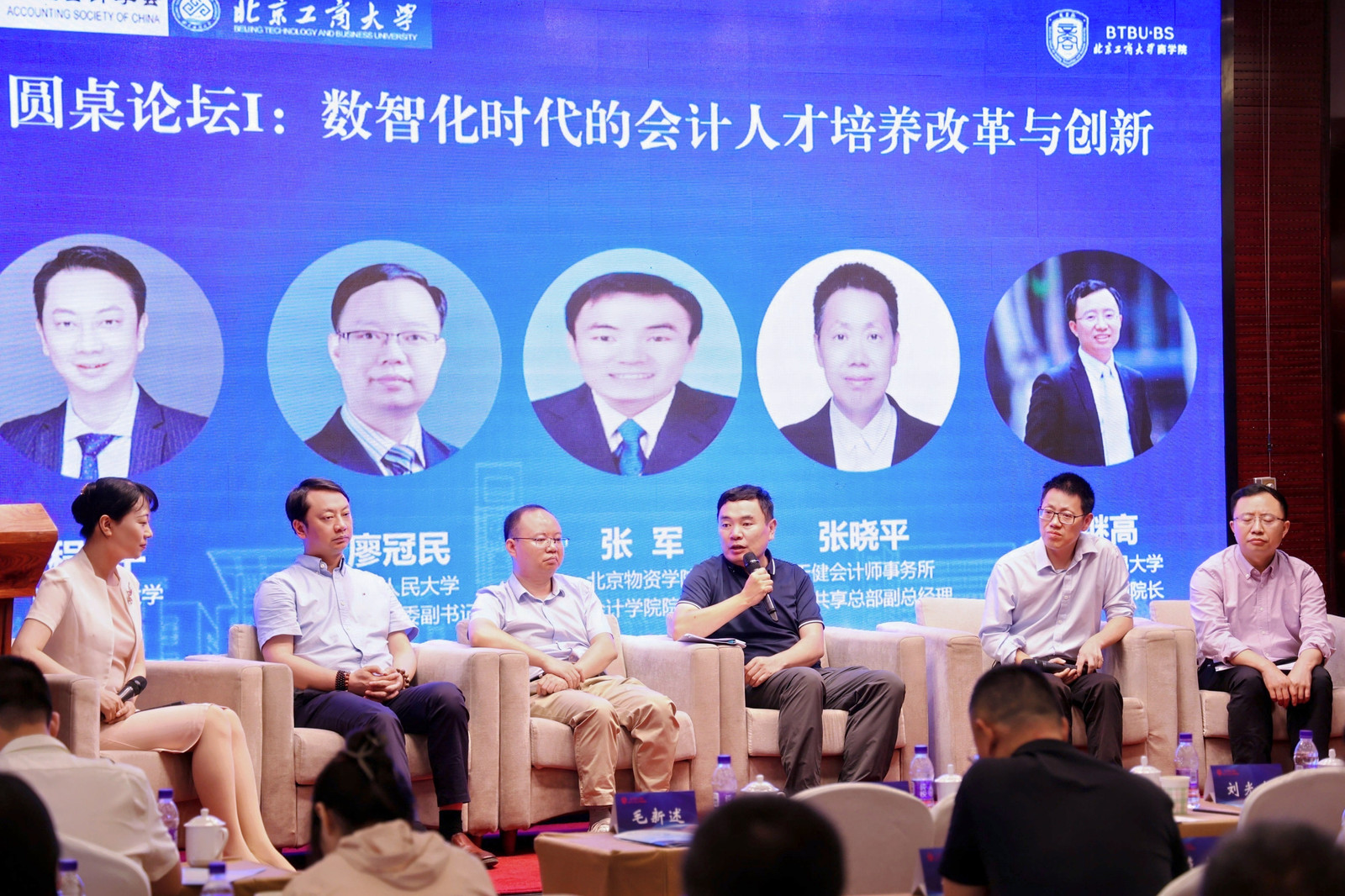 圆桌论坛分为上下两场。在“数智化时代的会计人才培养改革与创新”圆桌论坛环节,重庆理工大学会计学院程平教授、中国人民大学第一版主 党委副书记廖冠民教授、北京物资学院会计学院院长张军教授、天健会计师事务所数据共享总部副总经理张晓平、对外经济贸易大学国际第一版主 副院长祝继高教授分别从高校人才培养、用人单位需求等分享所在高校优秀经验和典型做法,以及会计师事务所对会计人才培养的改进建议。