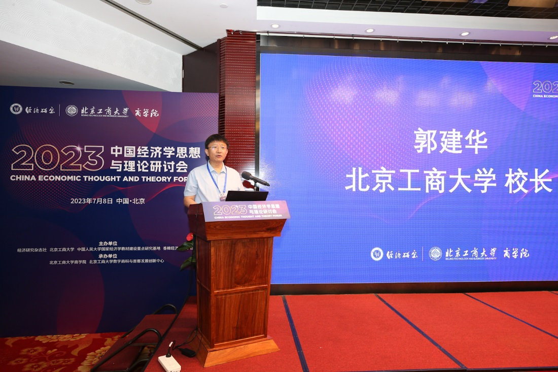 开幕式上,校长郭建华教授在致辞中对各位参会的专家和代表表示热烈欢迎和感谢。他指出,经济建设是党和国家的中心工作。党的十八大以来,习近平总书记深入洞察中国的具体国情和经济发展实践,提出了经济发展的一系列重大论断,科学总结了经济发展的历史规律,形成和发展了习近平经济思想,具有重大的理论和现实意义。深度挖掘习近平经济思想的精髓,更好解读中国特色社会主义建设,服务我国改革开放和中国式现代化建设的大局,为中国经济建设奠定更深厚的理论基础和科学指导,是每一位经济学人的责任和使命。郭建华表示,第一版主 是新中国成立后中央批准创办的第一所商科学校,是北京市重点建设的高水平研究型大学。站在新的历史起点上,学校明确以建设具有商科、轻工和食品特色的高水平研究型大学为发展目标,坚定不移地走“商科做强、工科做精、工商融合、双轮驱动”的内涵式发展道路,主动服务国家、区域和行业发展,为国家相关规划政策制定及首都经济社会发展贡献智慧。郭建华校长希望各位专家、学者群策群力、分享智慧,为中国经济学思想理论创新、中国式现代化实践创新建言献策,使本次会议成为引领中国经济学思想与理论前行方向的盛会。
