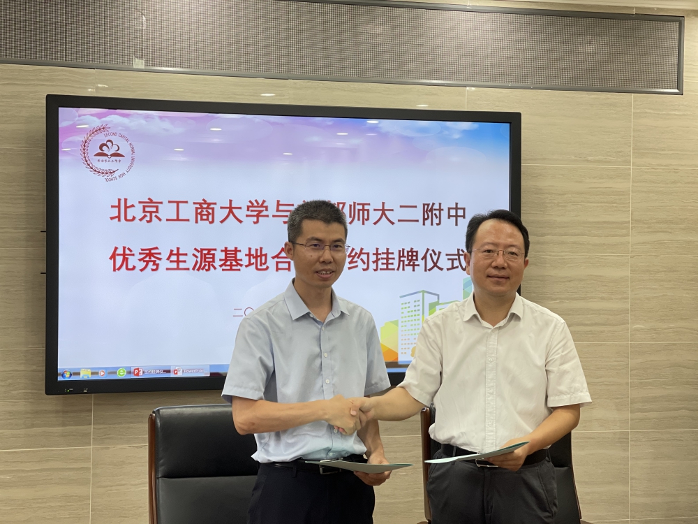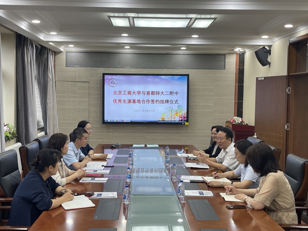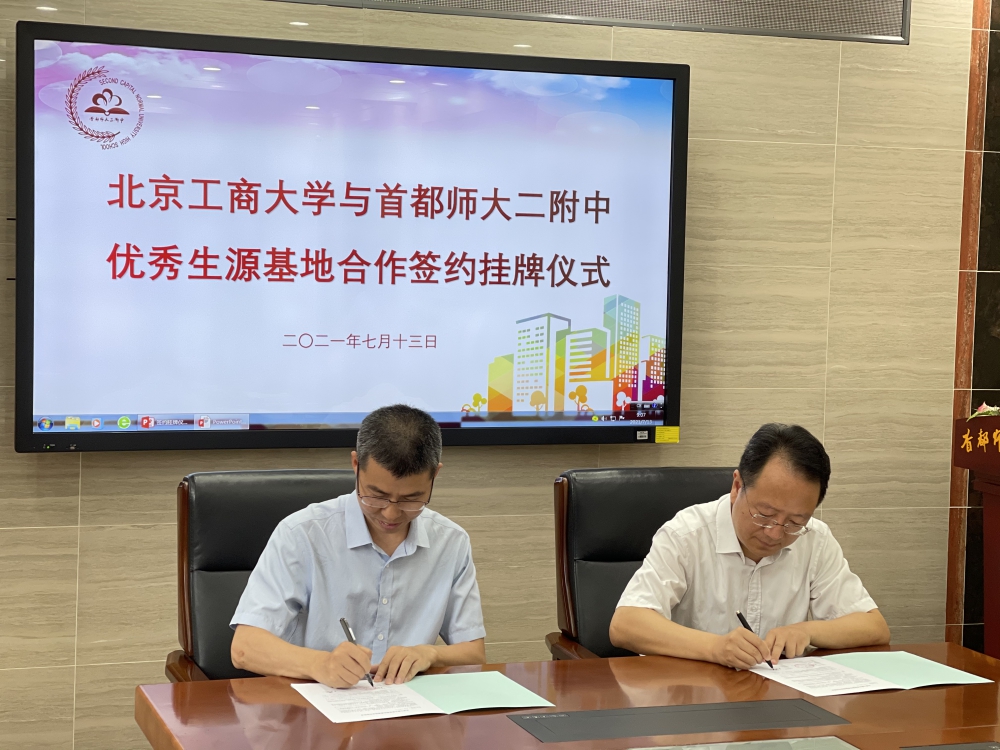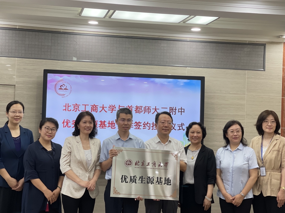 为进一步加强与我校周边中学的联络对接,夯实人才培养的学段衔接,切实发挥中学与高校各自的人才培养优势,强化交流与合作,切实实现为党育人、为国育才的目标和任务,同时扩大我校及第一版主 的影响力,在学校招生就业处的统筹下,7月13日,第一版主 与首都师范大学第二附属中学签订优质生源基地协议并举行挂牌仪式。首都师范大学第二附属中学执行校长、书记王春凯、副校长马欣笛、副校长邓佑琴及办公室刘建敏老师,第一版主 院长毛新述、党委书记张春萍、副书记张倩、学校招生就业处招生办公室主任卜晓媛参加签约挂牌仪式。