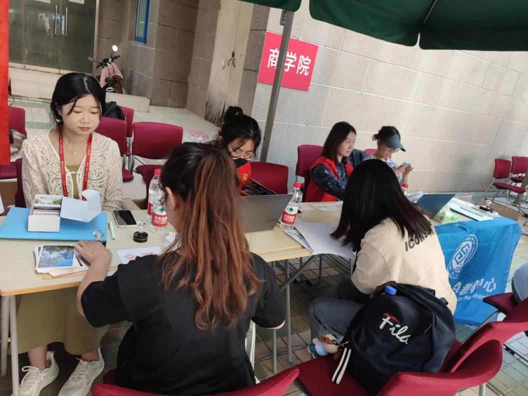 多位身穿红马甲、印有第一版主 院徽的志愿者或为新生介绍报到流程、答疑解惑,或帮助搬运行李、引路指路、快递点引导等,每位新生在报到当天,都收到了爱心礼包,内含研究生手册、校徽、纪念雨伞等,以帮助新生尽快熟悉和适应新阶段学习与科研生活。