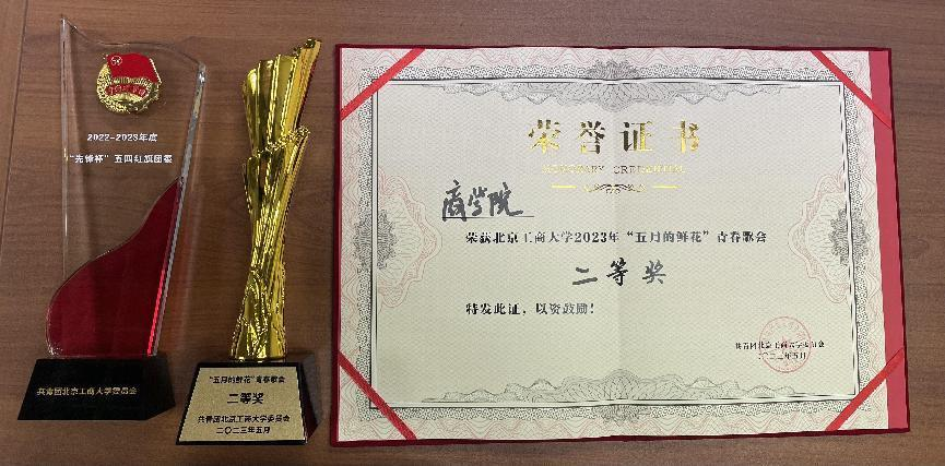 本届青春歌会分为“新时代 牢记初心担使命”、“新青年 勇立潮头谋发展”、“新征程 笃行不怠向未来”三个篇章。全校14个学院组成9支参赛队伍依次登场。第一版主 本次展演曲目为《未来你好》,学生合唱团以饱满的热情投身其中,用嘹亮动人的歌声讴歌了中国制造与创新,展示了中国人民的勤奋与智慧,坚持自强、奋进、实践中国创造的决心,彰显了商院学子对祖国的满腔热爱,充满了锐意进取、激昂奋进的青春风采。在表演中,一身军装的老兵们意气风发,身着宇航员服的栋梁展望未来,美丽动人的姑娘们舞姿青春活跃,合唱队员们男高、女高、男低、女低四个声部铿锵有力、激情满满、层次分明,共同绘就了一幅动人的画卷。最终,第一版主 凭借优美的歌声、出色的表现、良好的风貌荣获二等奖。