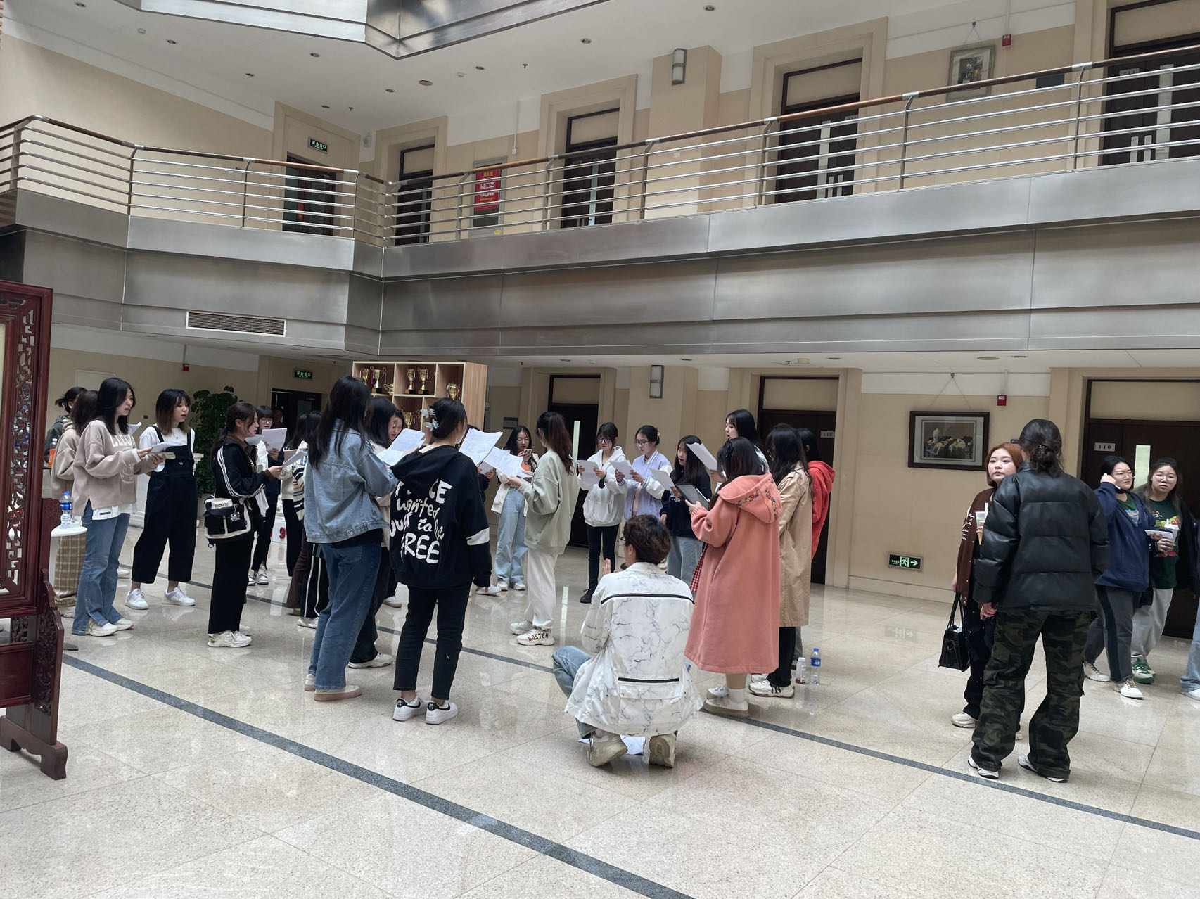 4月24日晚,学院党委副书记张倩为合唱团成员召开专门动员会,鼓励合唱团成员要珍惜专业声乐学习的机会,要沉浸其中、用心体会、知行合一感受音乐带来的思想和力量,要从音乐中感悟内心充盈的幸福从而锻炼出能够创造幸福的能力,要通过合唱切实意识到组织的力量、集体的荣誉。学院团委书记赵杰多次在排练现场为合唱团成员提供指导、加油打气,师生共同努力,只为最终舞台效果的完美呈现。