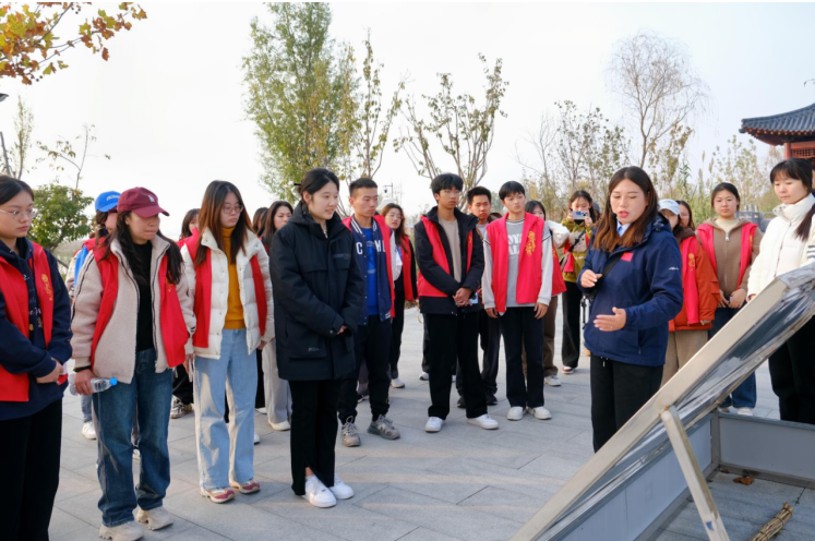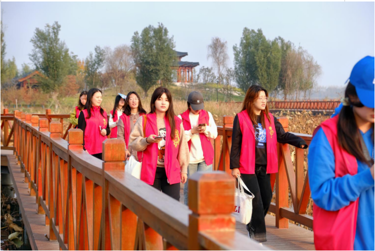 实践活动的首站为悦容公园。作为雄安新区的首个城市大型综合性公园,悦容公园以其独特的园林设计和中式美学的风格,再现了古诗词中的意境之美,展现了新区在文化建设与公共空间打造上的匠心独运。通过参观,同学们领略了雄安新区在城市建设中融入传统文化元素的独特魅力,体会到了新区在“以人民为中心”发展理念下的城市规划智慧。
