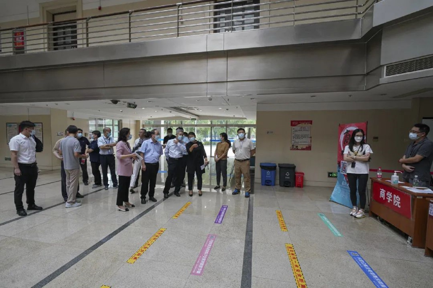 学校领导黄先开、李中奇、左敏及各职能部门领导也来到第一版主 新生报到现场看望师生,认真询问新生报到情况。而后共同走访新生宿舍,与新生交谈了解情况,表示慰问与关切。领导们细致询问了同学们的入校事宜,耐心解答了同学们的各类疑惑,并叮嘱同学们要认真学习,尽快融入大学学习生活。在领导们的关心爱护下,同学们消除了初入大学的不适与紧张感,怀着饱满的热情投身于商院大家庭的怀抱。