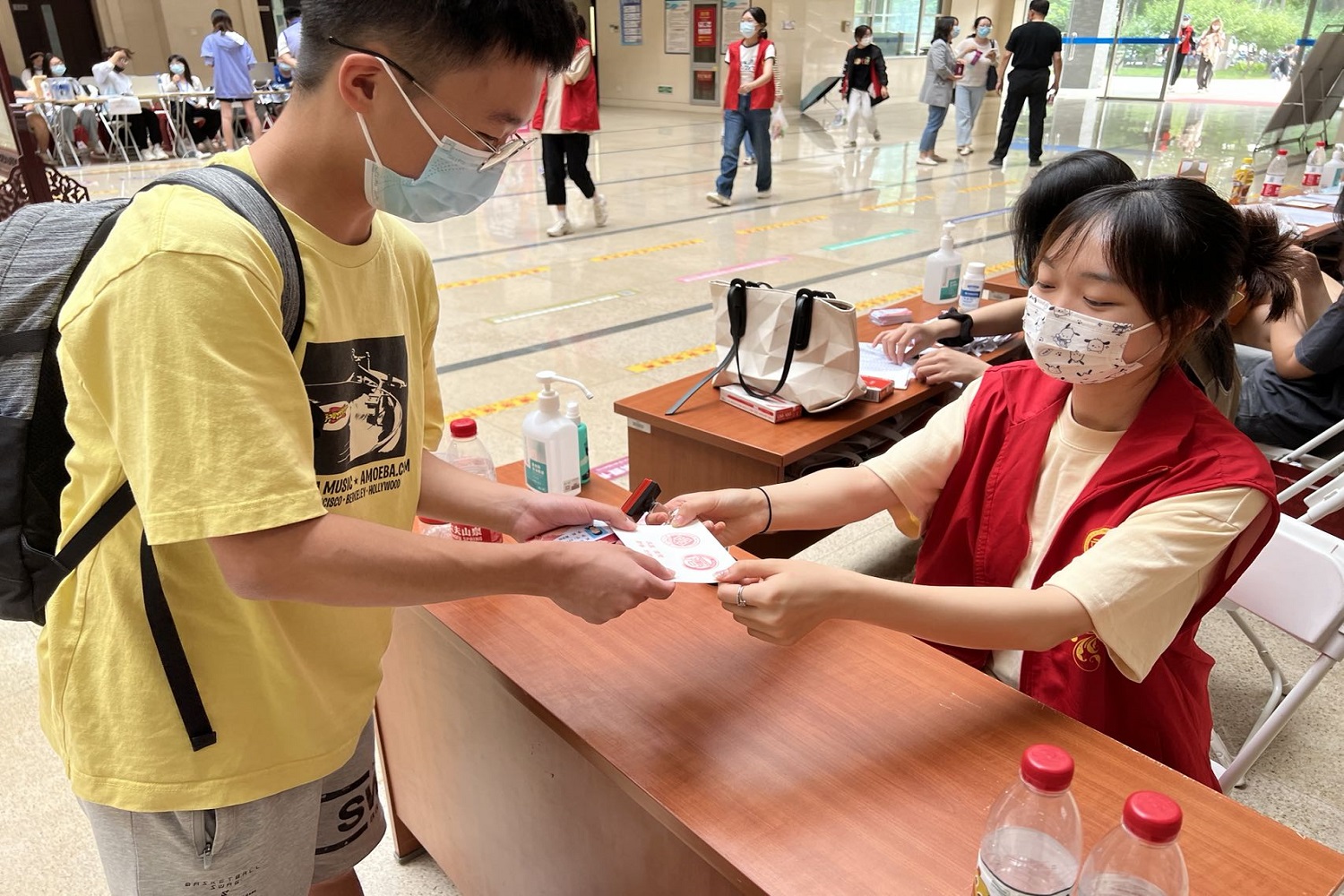 9月3日早八点,伴随着东方逐渐升起的温和晨曦,商院的新主人们踏入了他们的新家。本次迎新因疫情原因家长不能入校陪同新生报到,学院共安排130余名在校生参与其中担任志愿者迎接新生,让2022级的新生们都能感受到家的温暖与商院的热情。校园里随处可见志愿者们忙碌的脚步,接引人员与商院吉祥物在校门口迎接新生,学系成员和志愿者引导新生们前往报到点注册并领取入校物资,帮助新生运送行李送至宿舍。同时,还专门设有学院学生党员志愿先锋服务队,强化先锋模范意识,展现学生党员的良好形象。新生们在志愿者的帮助下顺利入校并在宿舍中安顿下来,逐渐融入大学的学习生活。此外,学院在迎新现场开展了“与校园合影——打卡集印章”特色活动,以当下流行的拍照打卡的形式,鼓励新生们探究校园特色建筑,用照片收集学校学院标志盖章作为留念。新生还可以在报到点与商院吉祥物小老虎合影留念。学院在报到点现场悬挂迎新寄语横幅“热爱可抵岁月漫长,商院与你来日方长”,鼓励新生热爱学校、热爱学院、热爱专业、热爱生活,以商院为家,积极向上,奋勇争先,以崭新的面貌迎接即将到来的大学生活。