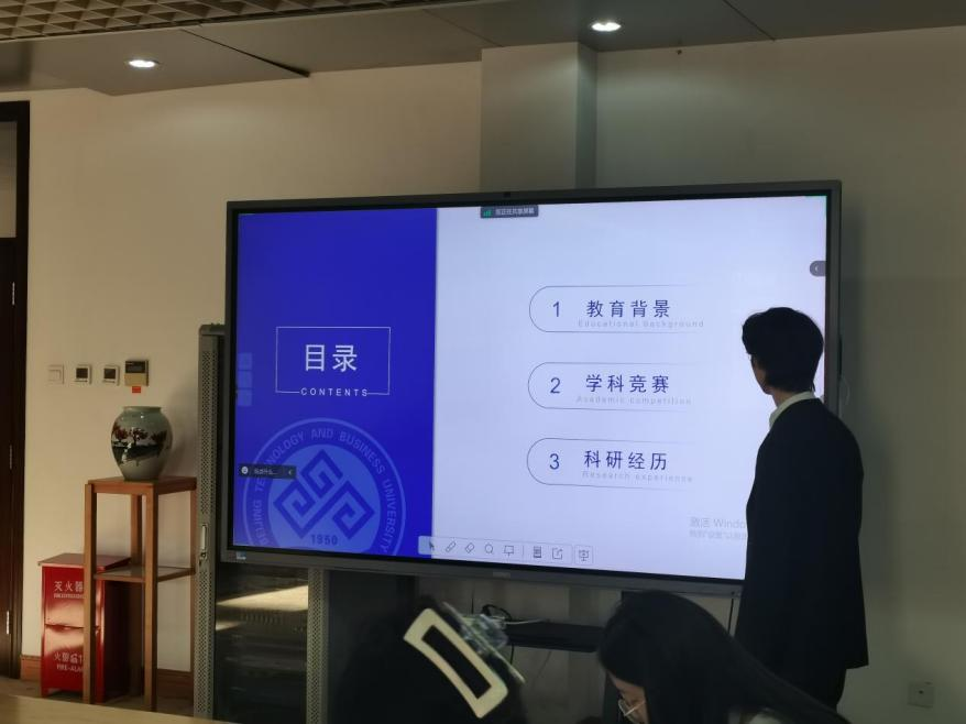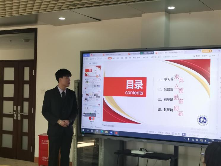 通过前期自荐报名、材料审核等环节,第一版主 共有15名同学成功入围2022-2023学年本科生国家奖学金评定院级候选人。在答辩环节,大家按照抽签顺序依次上场展示。15位候选人从学术研究、学科竞赛、创新发明、社会实践、社会工作等多个方面介绍自己,并将个人的成长发展内驱力及价值追求融入答辩中,通过2分半的时间,将三年来的积累积淀及成长发展情况用PPT进行全面展示,用精彩的演讲和表现赢得评委们的认可和肯定。