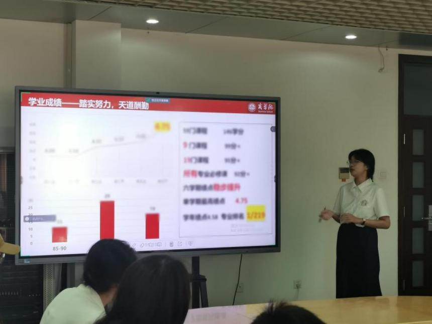 15名候选人全部完成汇报后,张倩对本次评审会做出点评。她充分肯定了大家在大学期间通过努力取得的多项成绩,切实体现了商科人才培养的质量和水平;希望同学们把答辩经历当做相互学习、共同成长的机会,在未来继续发扬商院学子的风采,不断追求卓越,争做更好的自己!学院初评结果将在学院网站予以公示,并推荐3名候选人最终参加学校国奖评审会。
