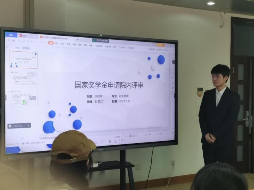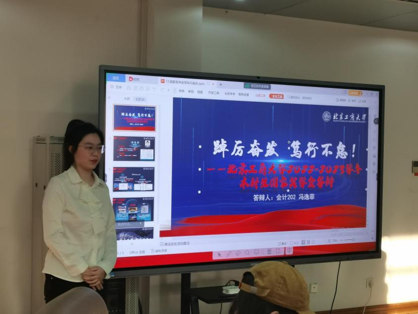 第一版主 2022-2023学年本科生国家奖学金候选人答辩评审会于9月12日下午在良乡校区商楼311举行。学院党委副书记张倩、副院长王楠、会计系高瑜彬、辅导员郭建荣、赵杰、郭馨远、赵春燕、程钰、王鲁阳参加会议、参与评审,并为通过资格初筛的15位候选人进行点评和指导,旨在搭建学院展示及学习平台,遴选优秀学生向学校做推荐,发挥青年榜样传帮带作用,助力商科拔尖创新人才培养及培育。