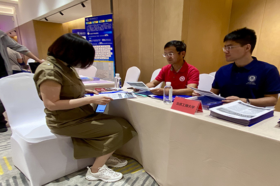 在开幕式环节,主办单位领导对考生及家长的到来表示热烈欢迎,并阐述了本次活动对考生志愿填报和高校招生的重要意义。在高校宣传展示区,第一版主 展位前人头攒动。展位内精心摆放着丰富的宣传资料,从学院的发展历程、雄厚的师资力量,到特色鲜明的专业设置、亮眼的学科建设成果,再到毕业生卓越的就业与深造情况,全方位展示了学院的实力与魅力。四位教师与校友代表热情耐心地为每一位前来咨询的考生和家长提供一对一服务,详细解答关于专业选择、录取分数线、校园生活等诸多问题,结合考生的兴趣与特长,给予个性化的报考建议,现场氛围热烈而融洽。