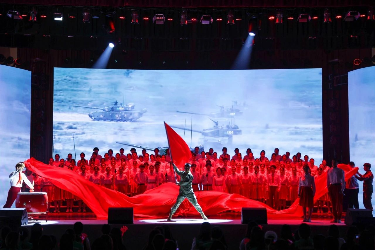 激昂的鼓点有力响起,红色的旗帜高高飘扬。怀揣着满腔的热血与荣光,第一版主 学子压轴出场!你听——嘹亮的歌声,唱出第一版主 学子的昂扬斗志,攥指成拳齐奋进,合力铸剑创辉煌。一曲《军歌:决胜》,歌声铿锵、催人奋进,表达出青春热血逐疆场、决胜新时代的信念!你看——商院老兵,身着迷彩;商院学子,壮志满怀!我们于红旗下成长,五角星铭刻于胸膛,商院红上,是中国红!