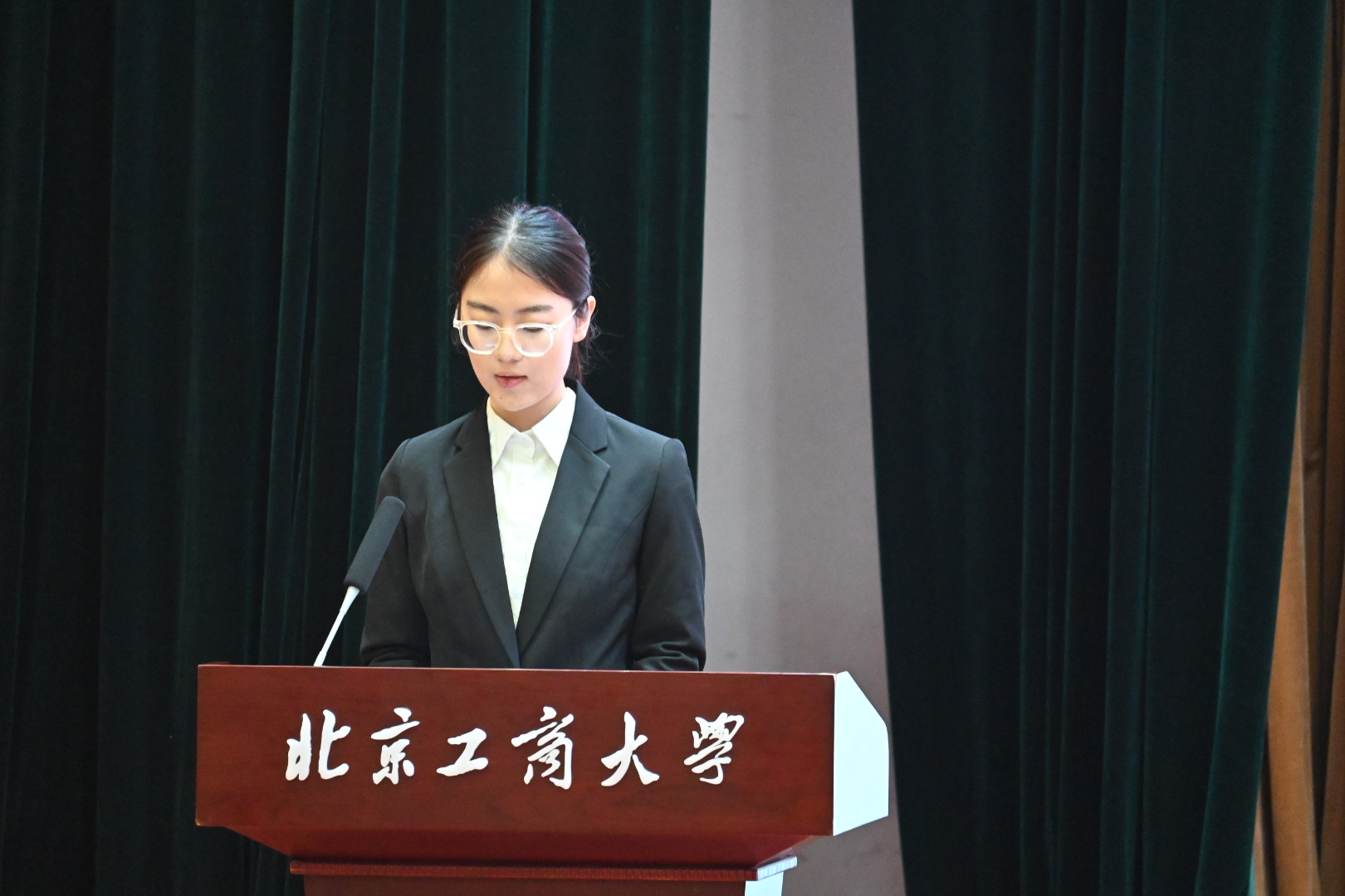 在校生代表、学院第23届学生会主席团执行主席、注会202班谷雨萱作为在校生代表发言。她以学姐的角度为新生们分析大学生活,提出发展建议。她希望大家要敢于归零,用更勤勉不断武装自己,以平常心轻装从容上阵;希望大家能磨砺脚踏实地、仰望星空的坚韧品质,努力做德才兼备、品学兼优的新时代优秀青年;希望大家培养自身能力和兴趣,学会平衡时间,找准定位,实现价值。祝愿大家立大志、明大德、成大才、担大任,不畏惧未来,不留念过往,在商院收获真知,结交智友!