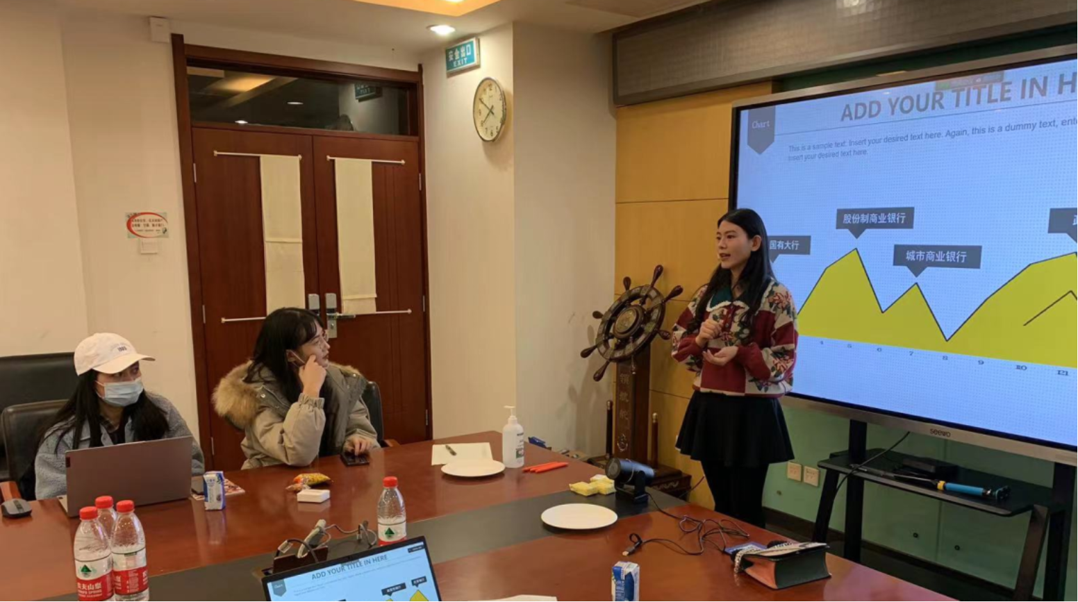 王思璇同学本科毕业后入职银行,对不同银行的区别和总体情况较为了解,她以PPT具体介绍了银行的相关情况和简历及面试准备的注意事项。