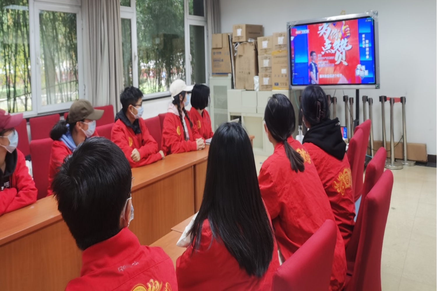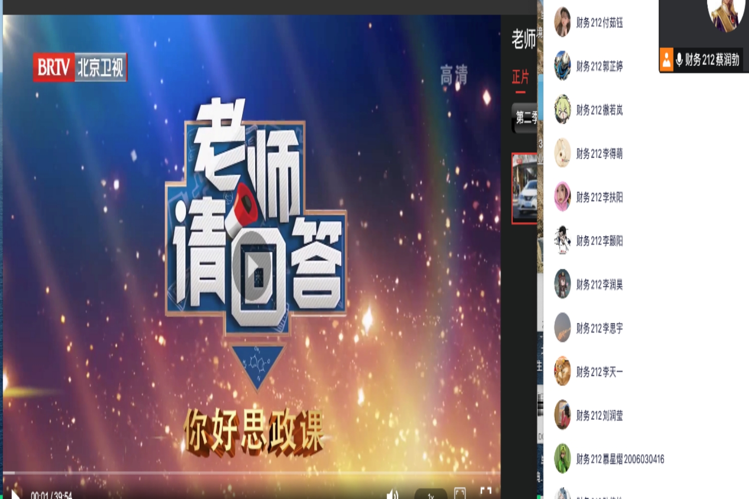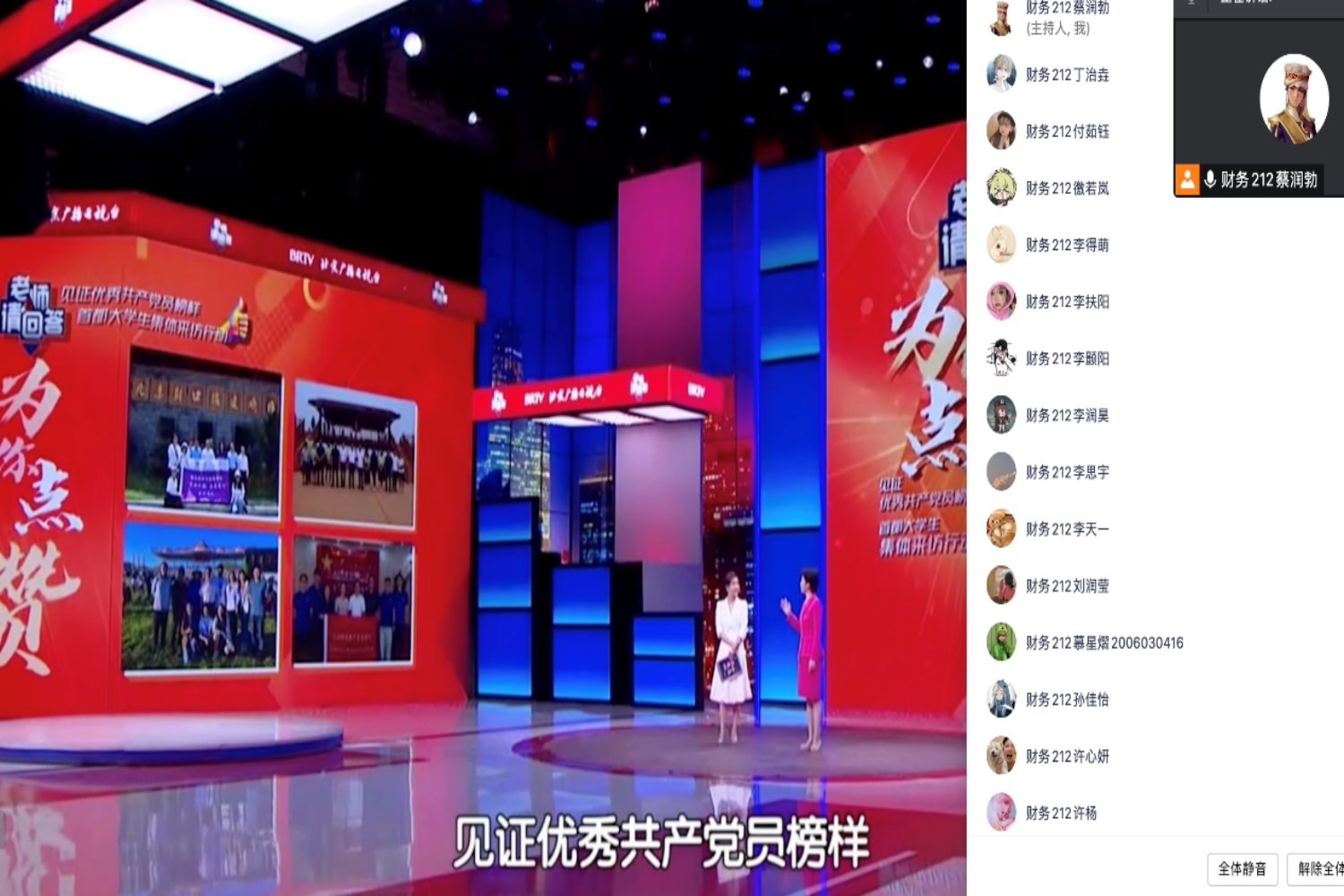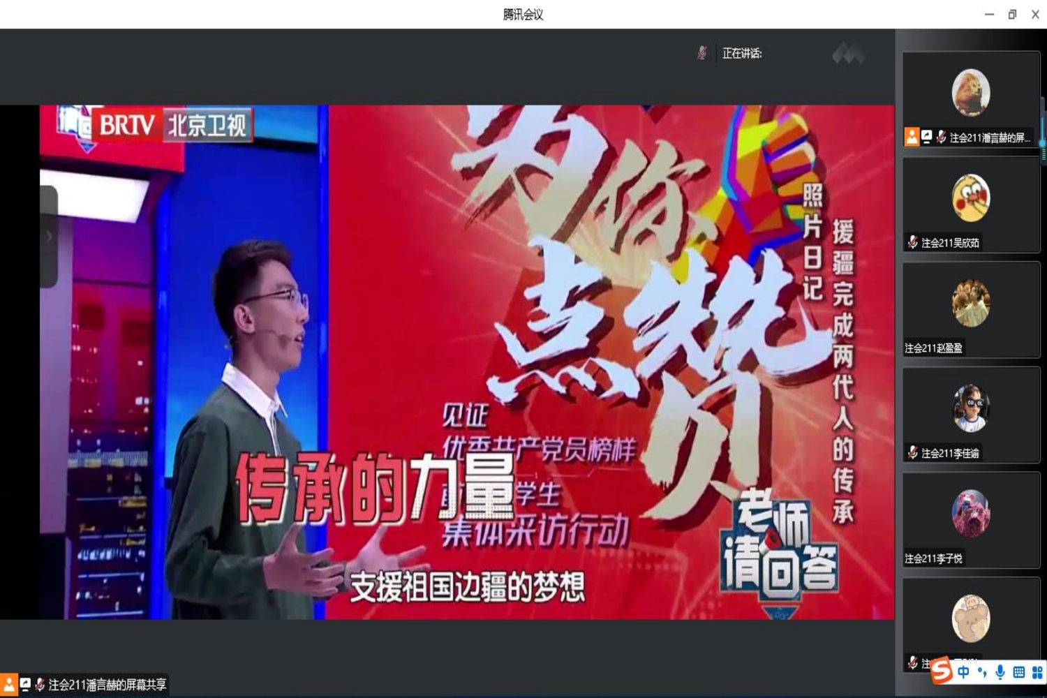 同一时间,第一版主 各班级、团支部也积极组织班级同学线上观看。部分班级采用统一观看的形式,同学们在腾讯会议中观看负责人播放的特别节目视频,也有班级采取个人观看的方式组织开展学习。