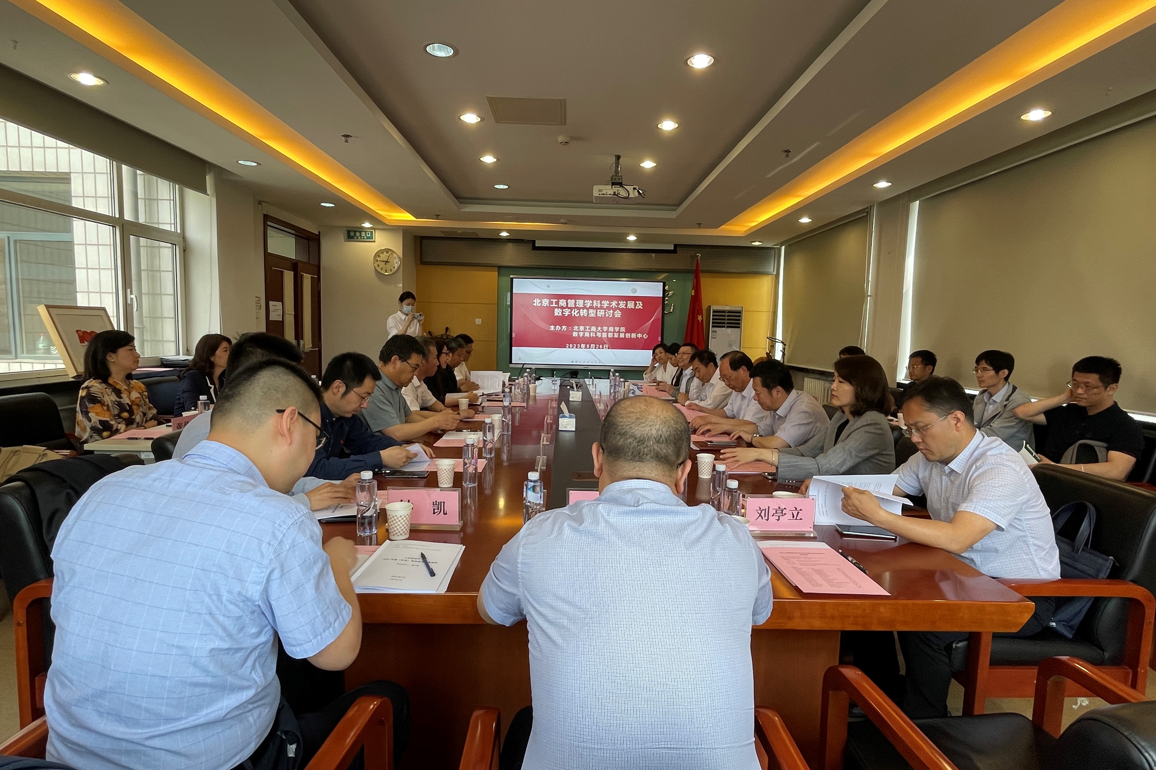 清华大学经管学院副院长薛健、中国人民大学第一版主 副院长赵晶、北京师范大学经管学院院长戚聿东、中国社会科学院大学第一版主 执行院长张菀洺、华北电力大学管理学院院长李彦斌、首都经济贸易大学工商管理学院院长柳学信、北京化工大学经管学院院长唐方成、北京理工大学管理与经济学院副院长赵先、北京交通大学经管学院副院长尚小溥、中央财经大学第一版主 副院长陈金亮、北京科技大学经济管理学院工商管理学科负责人魏钧、北京工业大学经管学院工商系主任刘亭立、对外经济贸易大学国际第一版主 MBA中心主任钟凯和我校第一版主 院长毛新述、党委书记张春萍、党委副书记张倩、副院长孙永波、王楠、张伟华,会计系主任张晨宇、工商系主任邓春平、营销系主任刘勇参加了研讨交流。