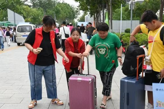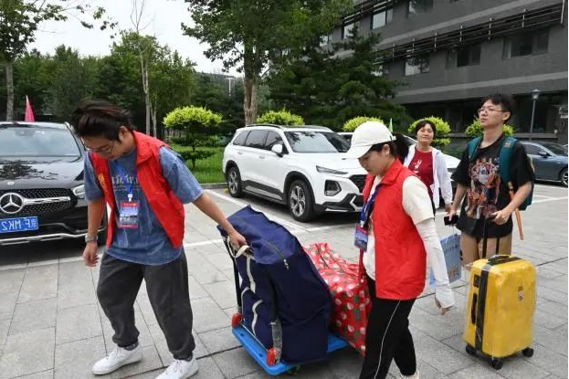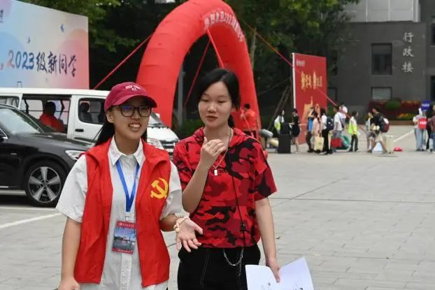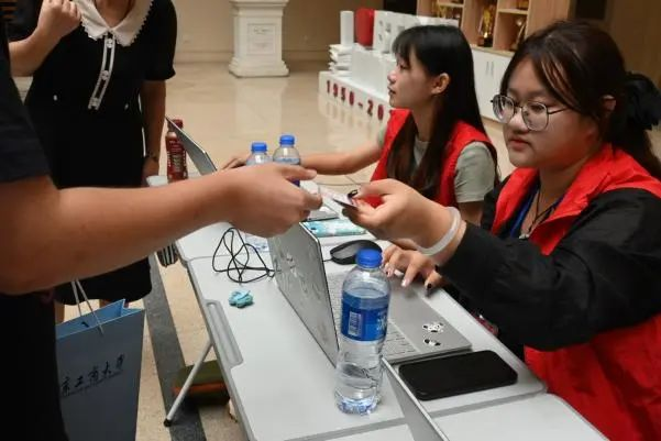 为迎新活动顺利进行,学院在暑期招募多位志愿者,他们提前到校准备、精心筹划细节。迎新当天,志愿者们身着“红马甲”,活跃在校园迎新路途的多个位置,以最昂扬的精神面貌迎接每一位初入大学校园的“萌新”。在路上,志愿者们贴心地帮助新生们搬运行李,当遇到有疑惑的同学家长,作为拥有丰富经验的学长学姐,志愿者们耐心地为新生答疑解惑、进行引导。新同学们在志愿者的引导下顺利来到第一版主 楼,有序办理学生卡领取、系统登记录入以及领取宿舍钥匙等各项手续。在前往新生宿舍的途中,志愿者们为新同学介绍着良乡校区生活区的建筑分布,热情、详细地向他们逐一介绍食堂、超市、医务室以及宿舍区。途中路过的北京银行卡的办理处格外受欢迎,为了帮助同学们熟悉校园卡的使用,学长学姐们耐心教学办理手续等,使办理流程十分便捷。新生们在细致入微的介绍中感受到来自商院大家庭的温暖,并迅速对校园有了大体认识,为接下来的校园生活创造了良好的开端。