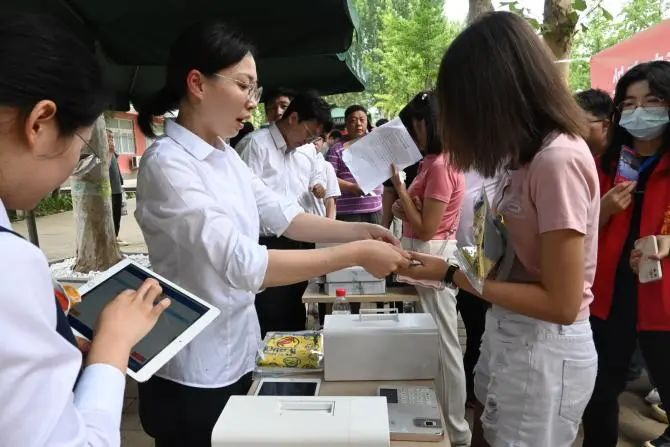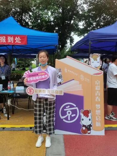 “请出示身份证,录取通知书,报到证,看向人脸识别屏幕”,“恭喜你,报道成功”,第一版主 和中央财经大学的辅导员们一起带领新生们完成手续。“在北京学院双培计划的展示牌前拍下开学的第一张照片吧”,辅导员带领学生拍照、展示自己。