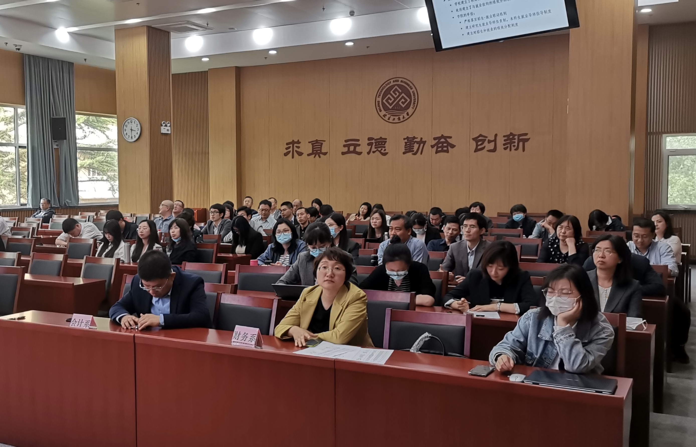 最后,院长毛新述对近期学科建设等工作进行部署和说明。在学科建设方面,他分析了目前我院工商管理学科第四轮评估的指标得分情况,强调以高精尖学科建设为主要抓手,力争实现学科建设近期、中期和远期目标。在本科生培养方面,建设“一流本科”教育体系,将招生、培养和就业构成人才培养的一个完整体系,通过全员、全过程、全方位育人来提升人才培养质量。在研究生工作方面,出台了研究生创新性科研成果认证标准,进一步加强硕士研究生和博士研究生的培养。在科研工作方面,制定制度,引导科研工作从更多数量向更高质量转变,依托学院科研平台建设,推动高水平智库研究,积极服务北京市和行业发展。毛院长谈到,学院积极支持教师进修、参加学术研讨,通过师资队伍提升计划、学科专业经费支持办法等,推动学院学科专业建设和持续发展。
