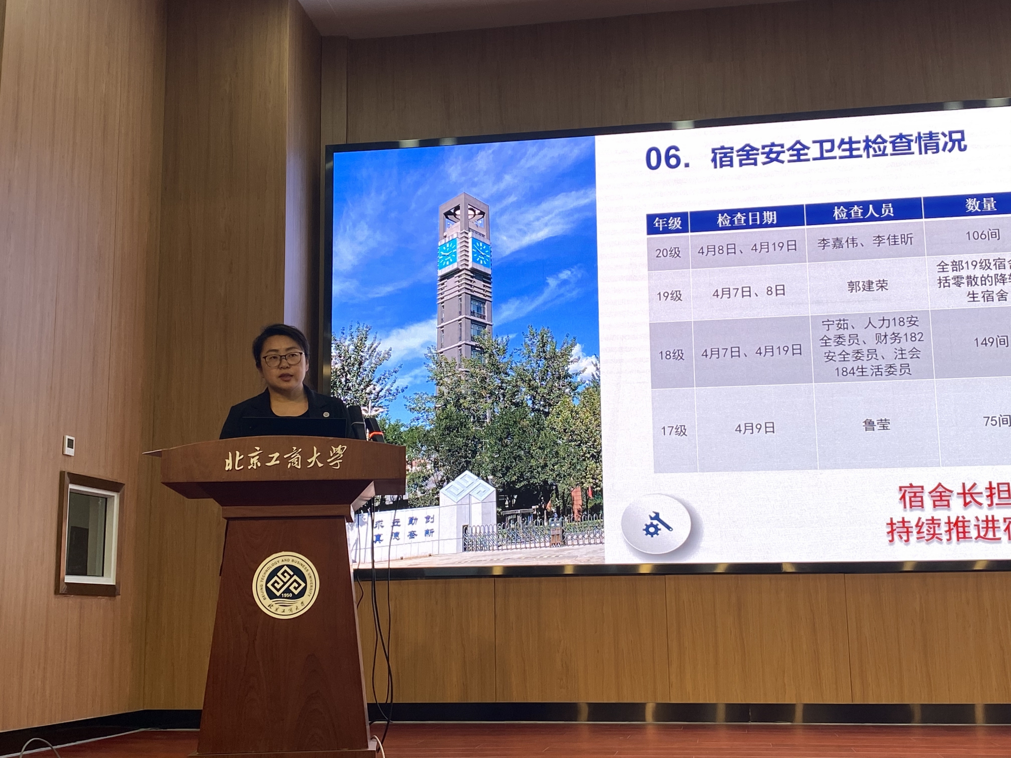 党委副书记张倩对本学期学院学生工作进行了阶段性的总结。她首先就2021届学院本科生和研究生的就业情况进行了详细分析,介绍了前期就业工作开展情况、当前部分学生就业不积极的状态和学院后续举措机制,从开拓就业市场、广泛发布信息、推动整体关注个体、实行就业导师制等,加强学生一对一帮扶,动员全体师生,协同促进就业。她还介绍了近期其他学生工作的开展情况,包括“永远跟党走”主题教育活动、学生疫苗接种情况、“四反两治”工作情况、学风建设情况、团学活动情况、宿舍安全卫生检查情况、意识形态工作情况和学生军训工作等,介绍了相关工作安排和后续要求,强调落实立德树人、推进协同育人。