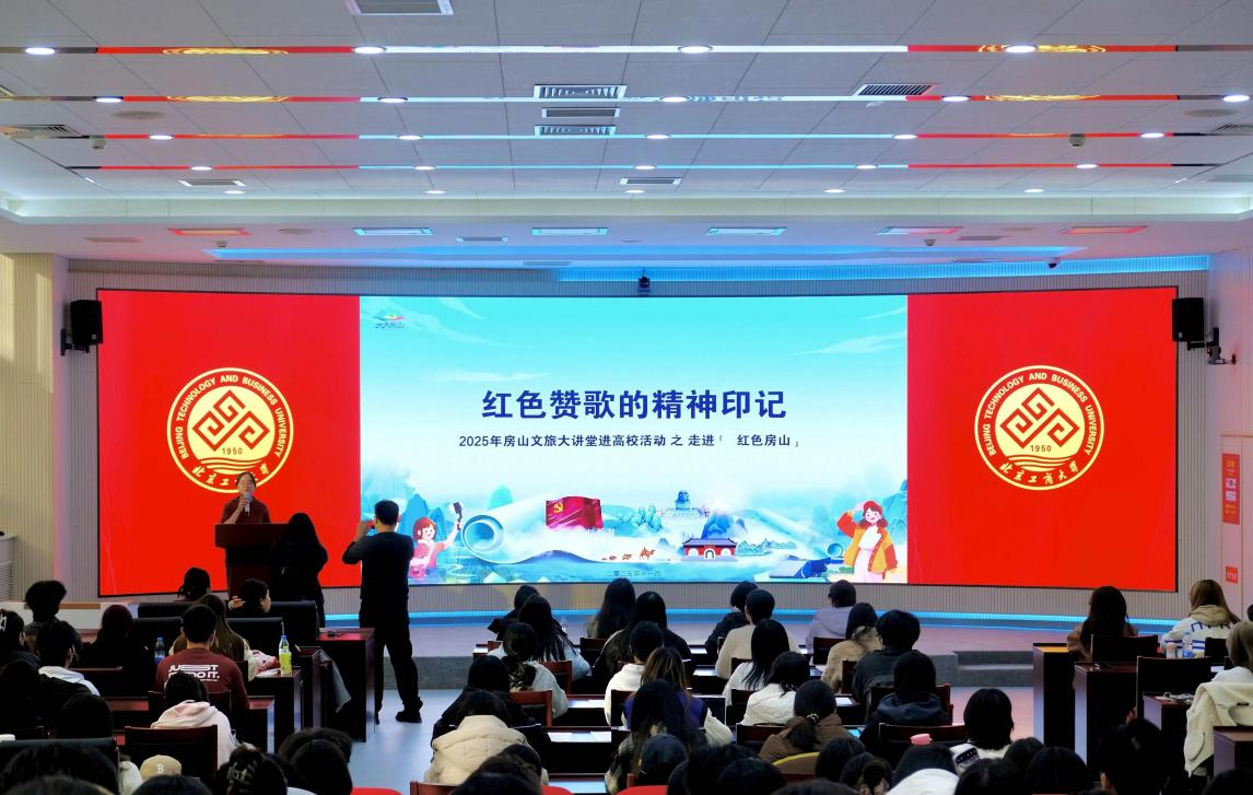 第一版主 联合房山区文化和旅游局开展“房山文旅大讲堂”进高校系列活动当亿万年地质奇观,邂逅波澜壮阔的红色党史,两场沉浸式文化盛宴走进校园,近日,房山区文化和旅游局主办的“房山文旅大讲堂”进高校系列活动,以双重主题点亮校园,让商院学子在知识与感动中,深度解锁房山的红色底蕴与自然之美。 11月14日,良乡校区报告厅内歌声嘹亮、掌声阵阵。房山区文旅宣讲团金牌讲师、“没有共产党就没有新中国”革命歌曲纪念馆志愿讲解员邢秀花老师以“红色赞歌里的党史”为主题,用音乐串起中国共产党波澜壮阔的奋斗历程。 从象征建党初心的《南湖颂》,到展现土地革命热情的《八月桂...2025年11月27日 -
