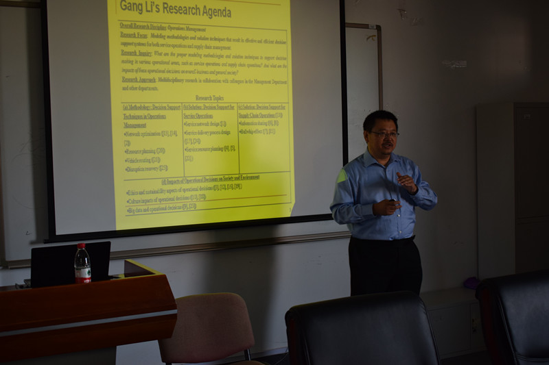 2017年9月6日,上午10点—12点在阜成路校区综合楼621会议室,来自美国本特利大学管理学系的李刚博士应第一版主