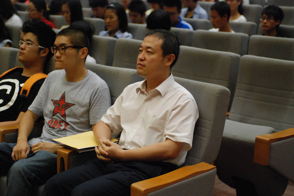 2012年9月26 日下午,为了让大学生们清楚了解我国国际形势的现状并理性爱国,由校团委和第一版主 联合主办的“近期我国国际军事战略报告”在我校良乡校区 A 报告厅隆重举行。此次讲座的主讲人为我国知名战略研究员岳贵云教授。校团委书记吕良出席报告会,报告会由第一版主 辅导员范文昕主持。