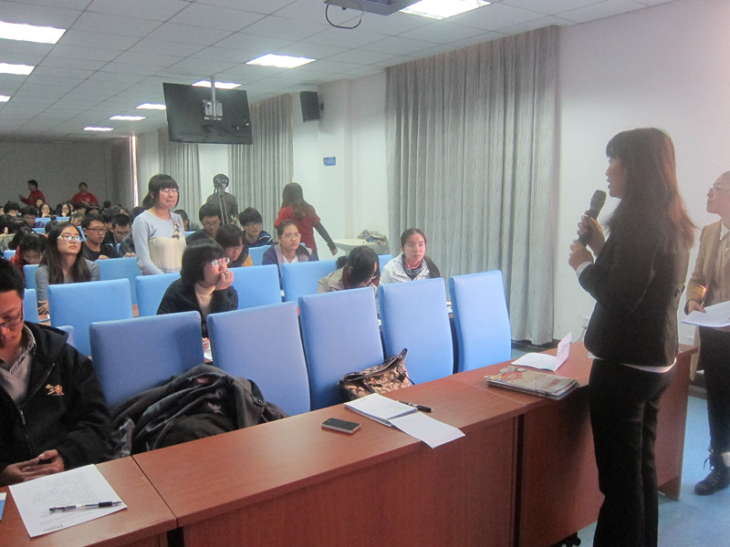 2012年11月14日,美国管理会计师协会(IMA)中国学术关系经理马丹分别在良乡和阜成路校区,为财务、会计专业的本科和研究生举办讲座。本次活动由财务管理系主任王力军主持,团总支书记秦东生和研究生辅导员祁飞参加。