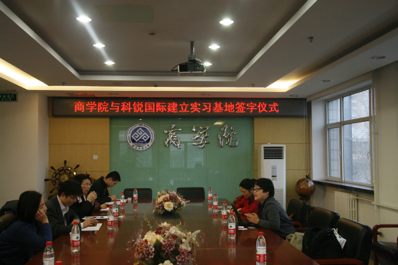工商管理系主任曹正进代表教师对合作表示热烈的欢迎。与会的其他教师就合作细节与科锐国际的田经理进行了商讨和沟通。