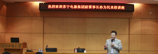 第一版主 邀请孙为民来校讲座,以苏宁为例反思“零售业变革”3月27日,苏宁云商副董事长孙为民应第一版主 MBA教育中心邀请做客北工商,为MBA师生及研究生做了一场题为“零售业变革”的讲座。讲座由国际交流与合作处处长何明珂教授主持。 孙为民在讲座中回顾了苏宁过去几年在战略层面上的转型历程,通过互联网思维与传统零售思维的碰撞,反思了苏宁在零售业变革中遇到的误区,并阐述了由此衍生出的对未来发展策略的思考。孙为民坦言:从战略层面上,苏宁的互联网转型是成功的,虽然目前的结果并不太好,利润也是下降的,但是从集团的整个战略以及未来的发展上来看并没有...2015年07月15日 -